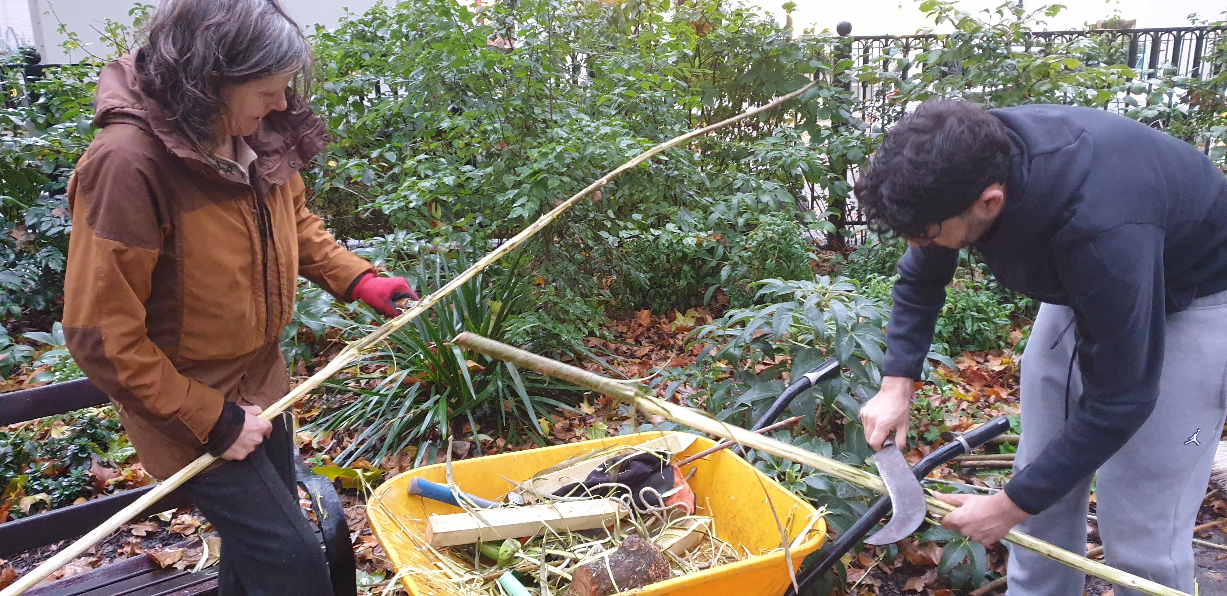 Friends of Red Lion Square have been hosting a volunteer group of five French university students, 3 girls and 2 boys, this term. During their 2-hour sessions, they have planted over 1,000 bulbs, installed stakes for willow edging to two large beds, cleaned some benches and the history boards. In often challenging weather conditions, they have performed with enthusiasm and efficiency and the gardens are looking better for their efforts. Merci!