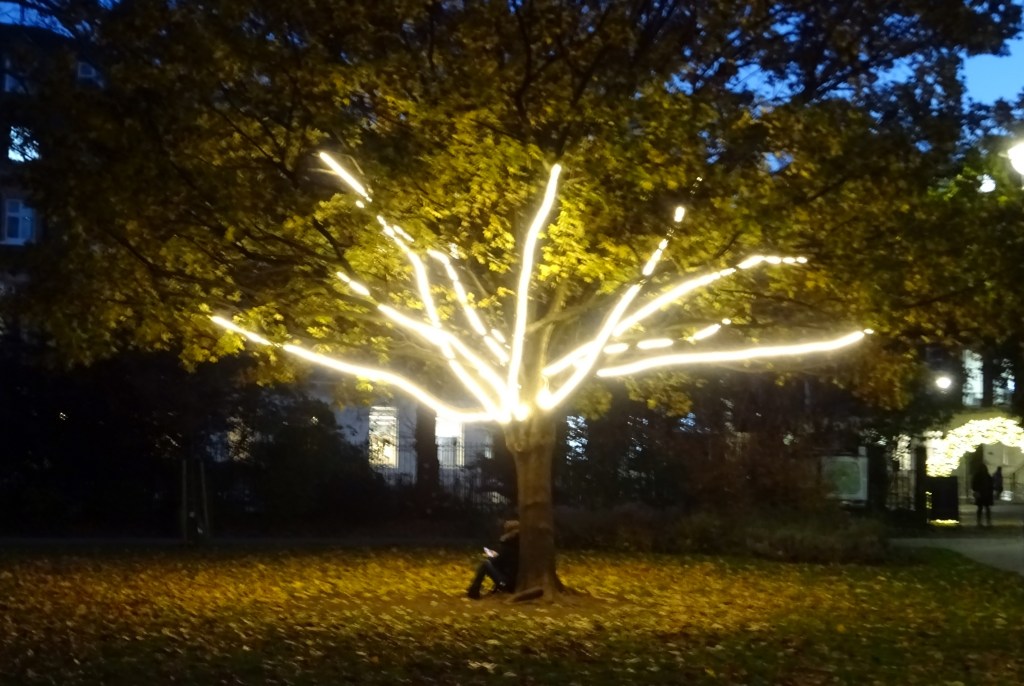 Lighting up the gloom of December – illuminations in Russell Square.