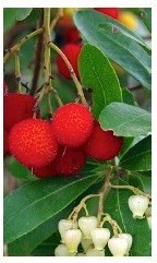 In the next few days, you might like to visit the evergreen strawberry trees (Arbutus) by the path side of the Caffè in Russell Square. The ripe ‘strawberry’ fruits are currently hanging in clusters accompanied by creamy-white flowers. But this rare sight may not last long before the birds and squirrels eat them! Birds love the red fruits. For us they are less tasty raw than they look, though they can can be used cooked and in jams. Bees love the small creamy flowers in early winter when nectar is scarce.