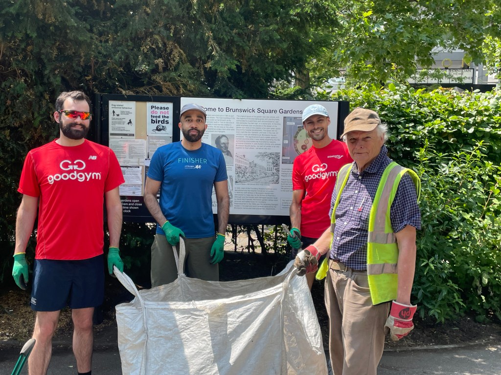 Friends of Brunswick Square Volunteers were supported in their gardening efforts in the gardens by four Goodgym runners recently.