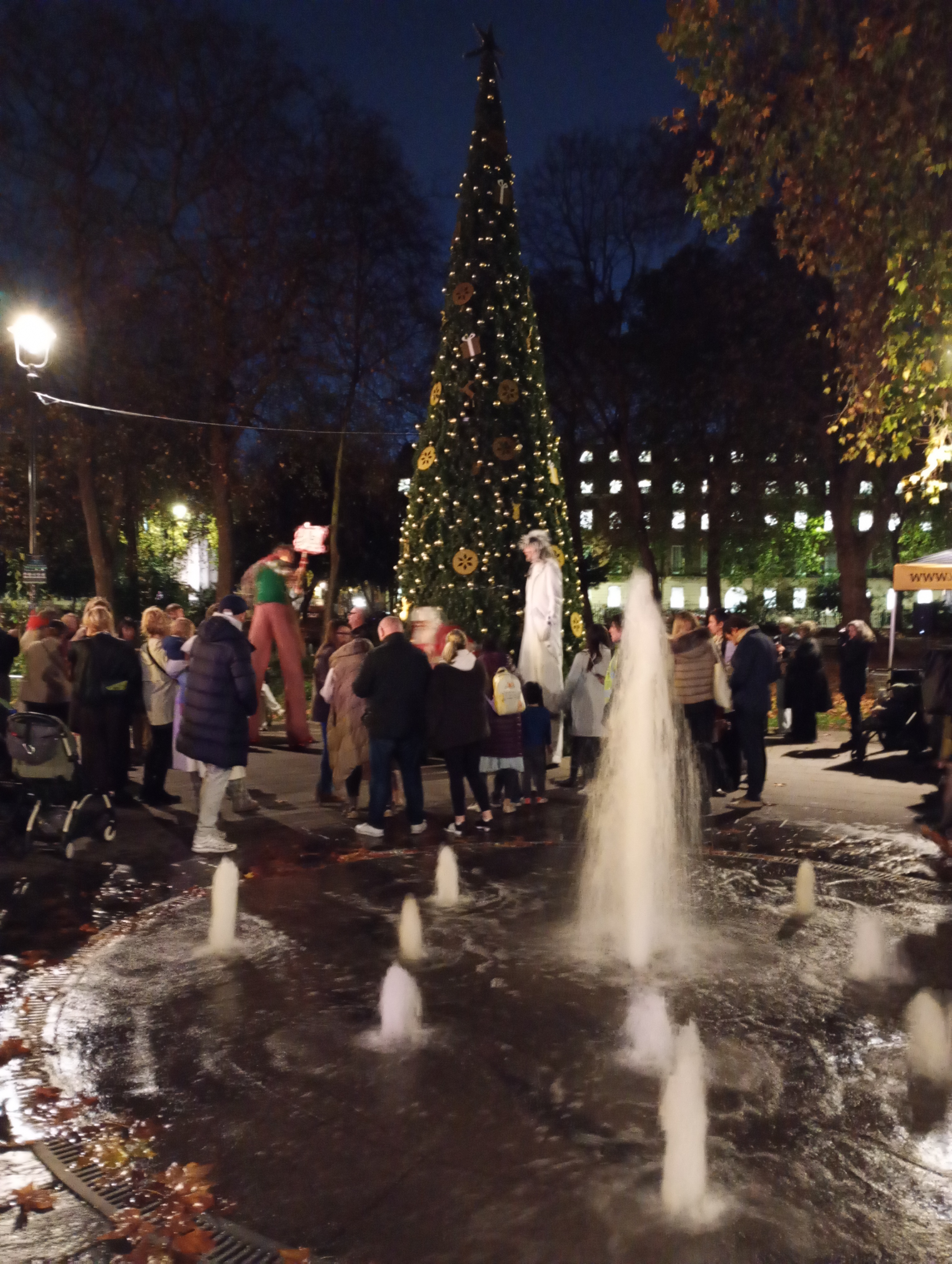 The festive season got off to an early start in Russell Square on 11 November. A large crowd gathered to watch the switch on of the Christmas tree lights, visited by Father Christmas, Cinderella and Prince Charming together with several extremely tall elves. Imperial Hotels provided drinks and mincepies and there was a splendidly lit carousel for magical rides. A candlelit procession then set off for the Christmas lights in the Brunswick accompanied by a carol-singing choir.