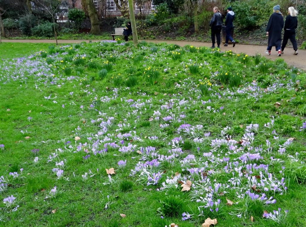 The early crocus are braving the rain and starting to make a show in Gordon Square and Russell Square. Take time for a stroll to enjoy them and lift your spirits.
